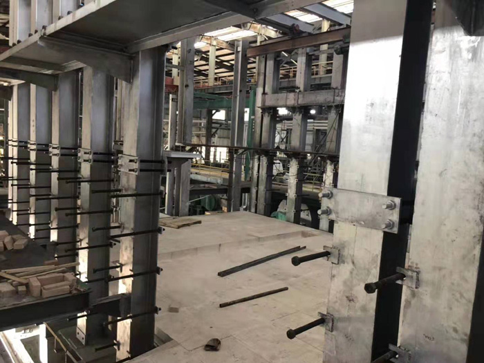 由南京91视频在线网站玻璃技術承接的1#水玻璃生產線冷修改造總包工程,己進入緊張的現場施工安裝階段。目前,窯爐工程鋼結構己完成,磚結構己完成至二層樓麵。焦爐煤氣燃氣係統,窯爐風係統,工廠製作完成,己進入現場安裝階段。計劃9月10日具備點火條件。